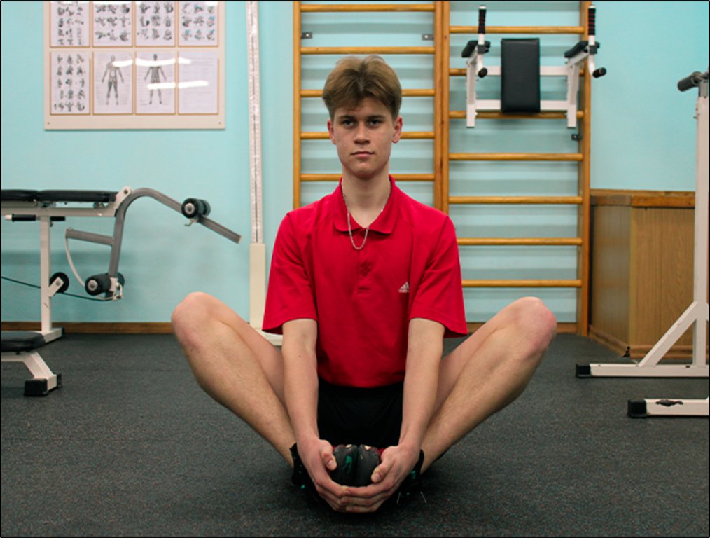 • В положении сидя прислоните стопы друг к другу, усядьтесь на седалищные кости, выпрямите спину.