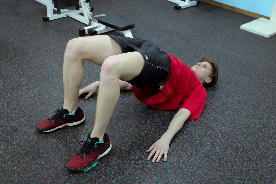 • Давим всей стопой в пол, поднимая таз вверх